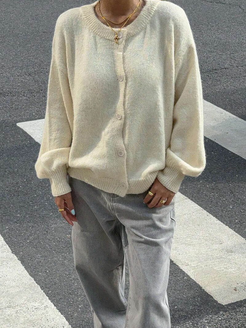 Marlowe Knitted Cardigan blandar värme och elegans i en lätt men ändå strukturerad stickning. Med en klassisk O-ringad halsringning och knappar framtill erbjuder den tidlös mångsidighet – både för uppklädda arbetskläder och en jordnära avslappnad look. Dess höst-vinter-estetik kompletterar säsongens lager-på-lager-plagg, vilket gör den till ett oumbärligt plagg för daglig förfining.