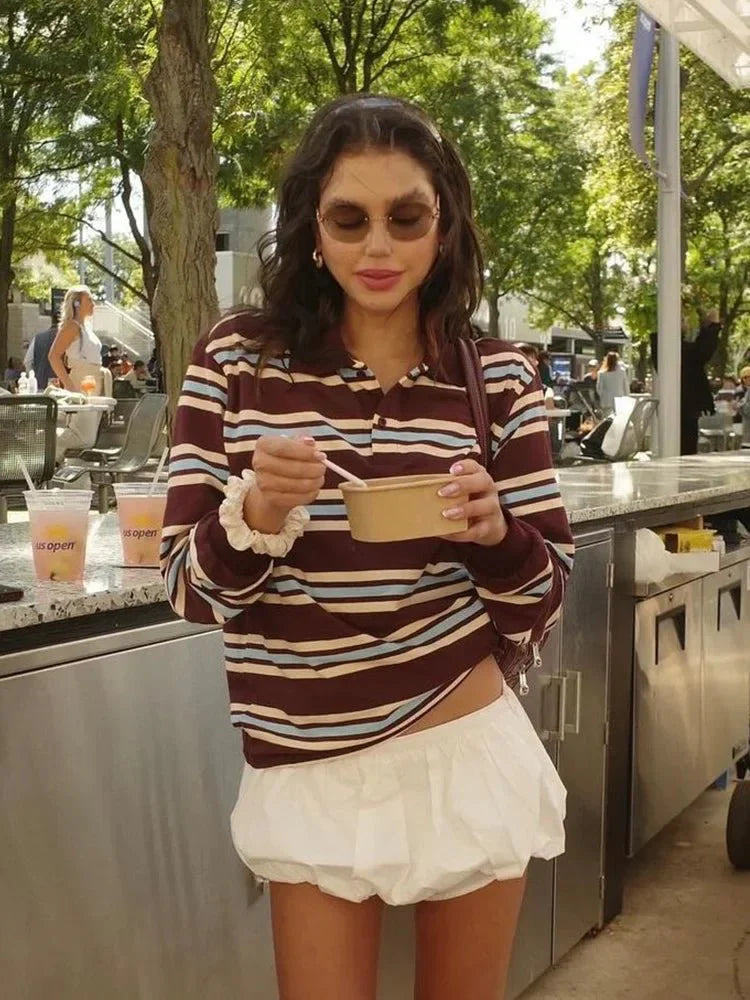 Vi presenterar Chelsea Striped Casual Dampolotröjan, designad för en avslappnad men ändå moderiktig look. Denna mångsidiga topp har en knappdetalj och är perfekt för sommarutflykter eller vardagliga sammankomster. Tillverkad av lätt tyg garanterar den komfort hela dagen.