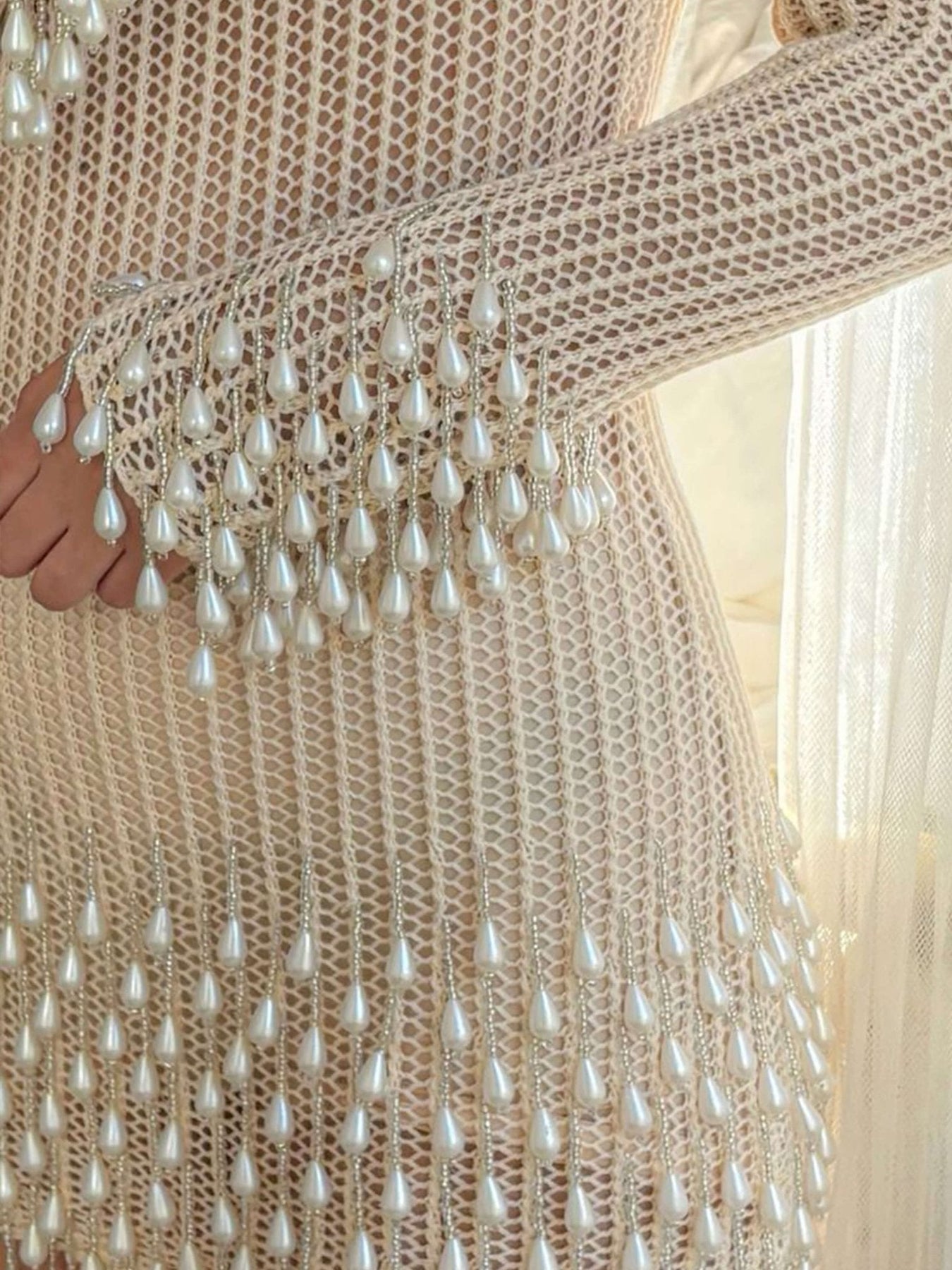 Darlene Mini Pearl Dress är en elegant och elegant klänning. Med en mjuk, feminin silhuett prydd med fina pärlutskämt fångar denna miniklänning tidlös skönhet med en modern twist. Perfekt för romantiska middagar, fester eller speciella tillfällen, den perfekta blandningen av elegans och glamour.