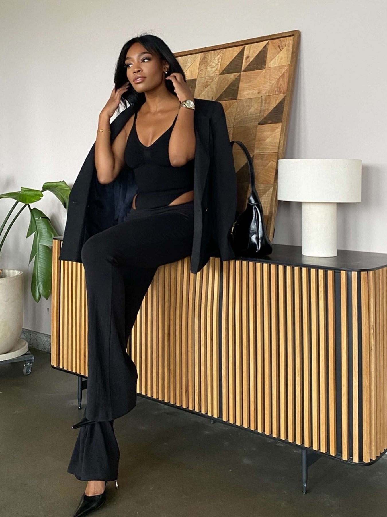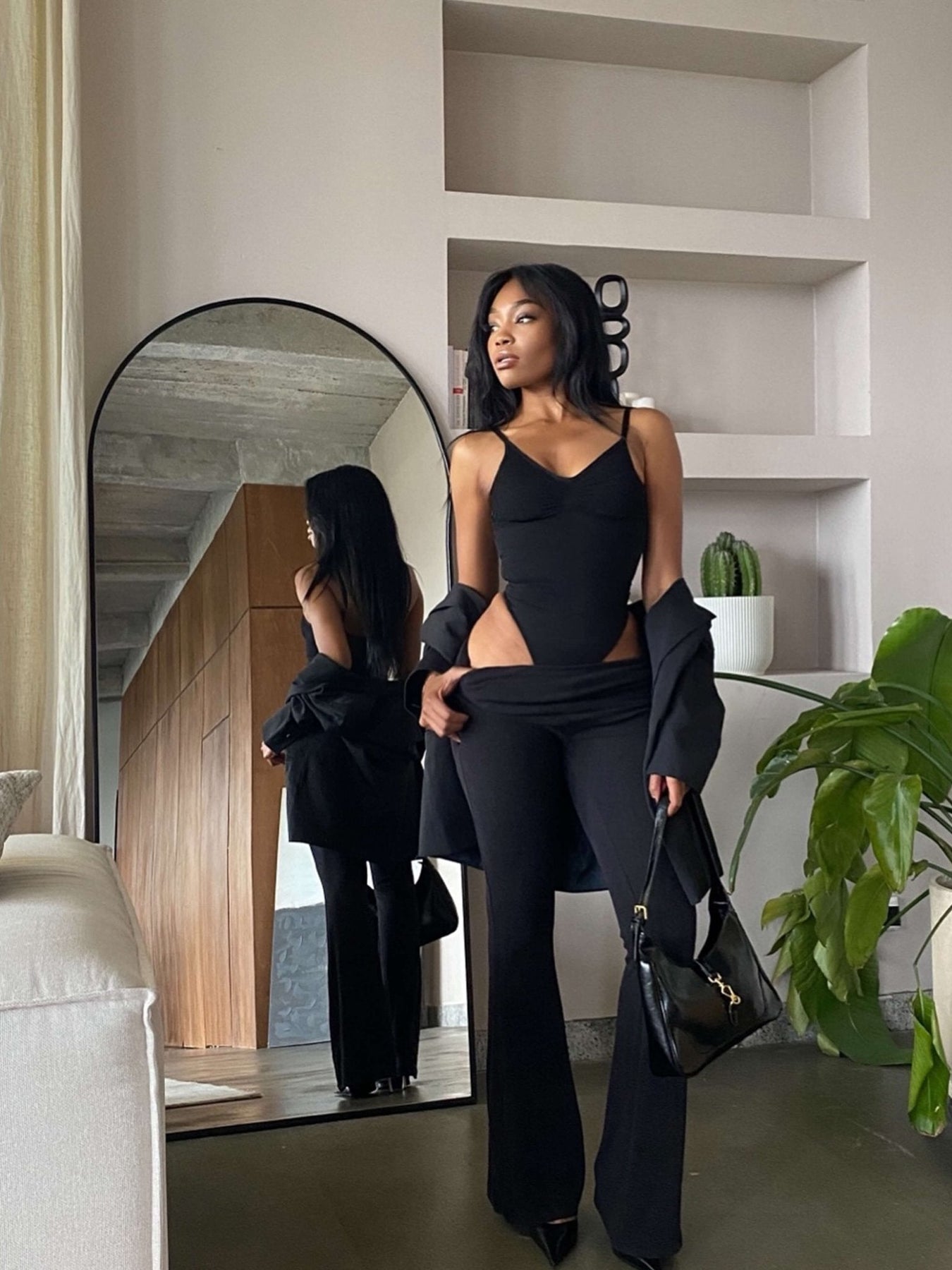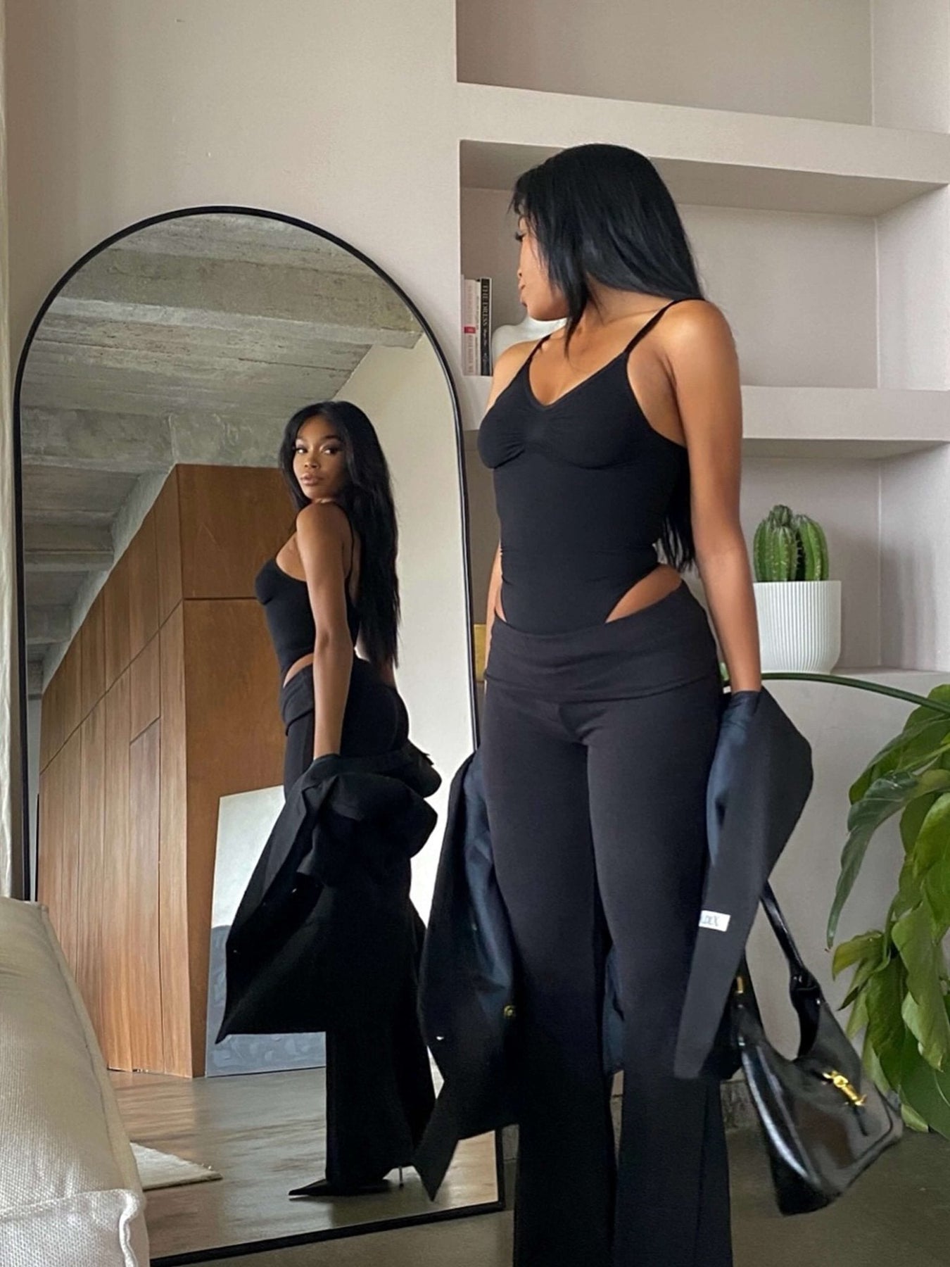 Seame Shapewear Thong Bodysuit är din hemlighet till en elegant silhuett. Designad med mjukt, andningsbart tyg och subtil kompression, slätar den ut sig och formar sig utan att offra komfort. Med en stringtrosa baktill för en sömlös finish och justerbara axelband för perfekt passform, kan detta mångsidiga plagg bäras under vilken outfit som helst eller stylas på egen hand. Självförtroende har aldrig känts så enkelt.