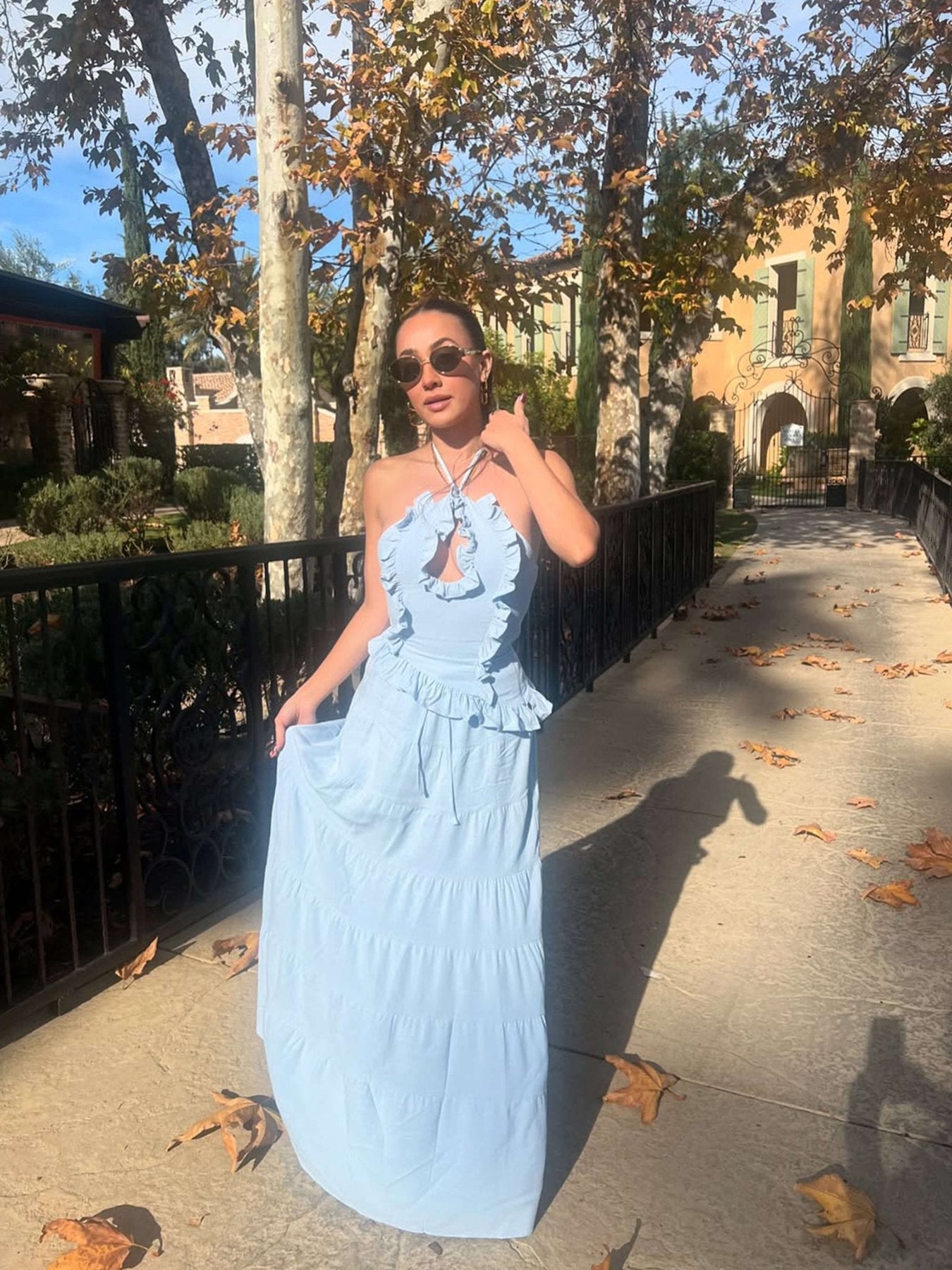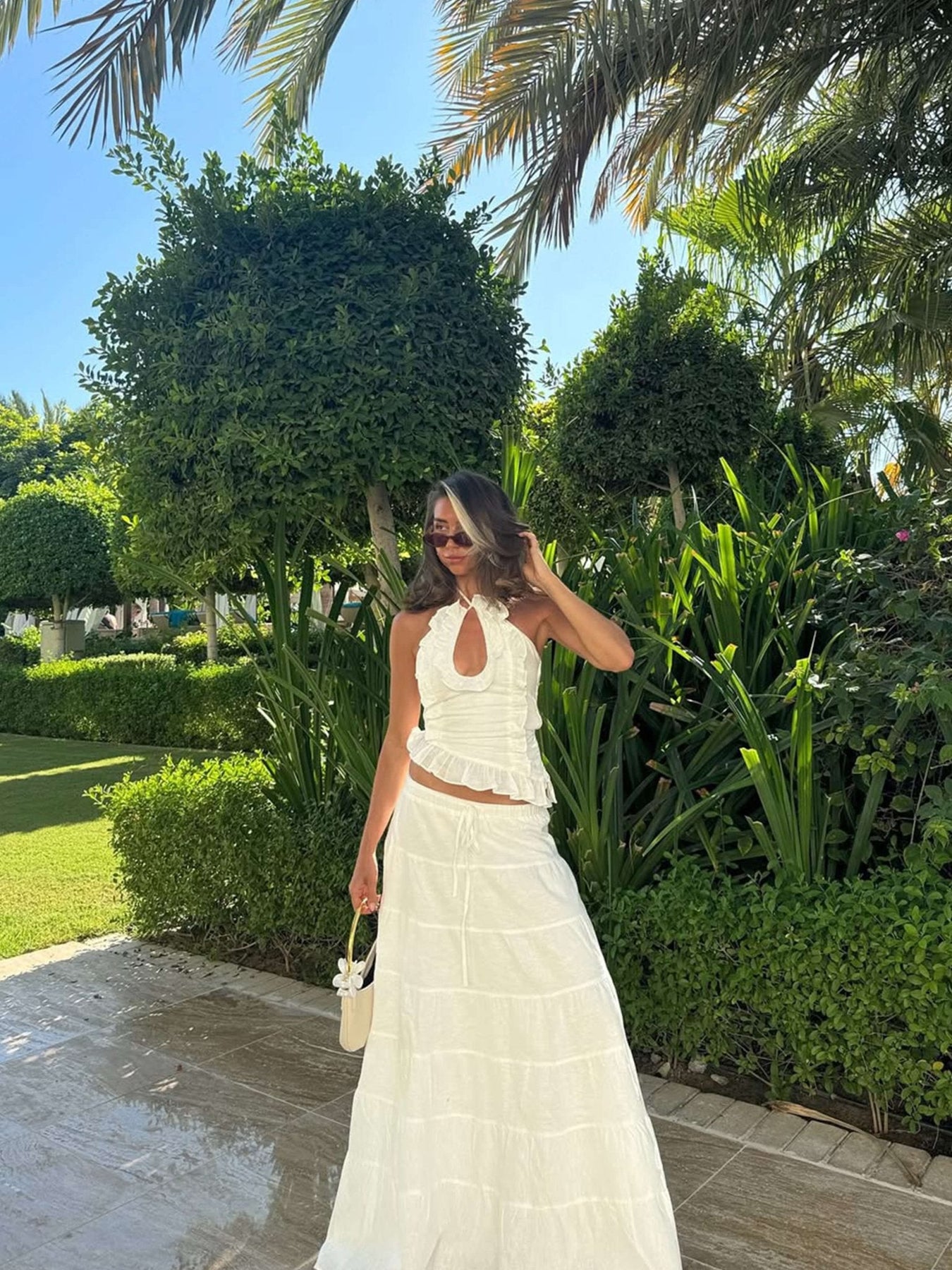 Sophia-setet är en elegant och mångsidig tvådelad ensemble designad för att du ska känna dig snygg och bekväm hela dagen lång. Tillverkad av högkvalitativ polyester, har den en elegant halterneckringning med fina volangdetaljer, vilket ger en mjuk och feminin touch. Den böljande maxikjolen skapar en smickrande silhuett, vilket gör den till det perfekta valet för olika tillfällen som semestrar, brunchdejter eller sommarkvällar. Setet finns i fantastiska nyanser av blått, vitt och gult, så att du kan välja det som bäst passar din personliga stil. Oavsett om du klär upp dig för ett speciellt evenemang eller njuter av en avslappnad utflykt, erbjuder Sophia-setet både komfort och sofistikering. Matcha det med dina favoritsandaler eller klackar för en look som enkelt övergår från dag till kväll.